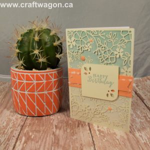 - Adhere laser-cut paper to Very Vanilla, adhere to card front