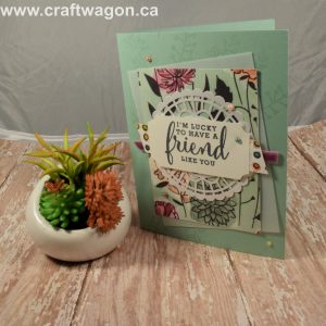 I recently co-hosted an event with my dear friend and fellow demonstrator Cathy. We hosted at a local pub, had dinner and made cards, using this bundle. It was a fun event. It’s wonderful to work alongside another creative and to meet other crafty people.