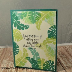 Pop of Inspiration was created using the Pop of Paradise stamp set and two ink colours Emerald Envy (retiring) and Lemon Lime Twist (in color 2017-2019). The inspirational quote is from Just Add Text stamp set and Tuxedo Black Memento Ink. If you look really close you may see the glitter & clear epoxy shapes. I thought it would give the illusion of dew drops on the leaves.
