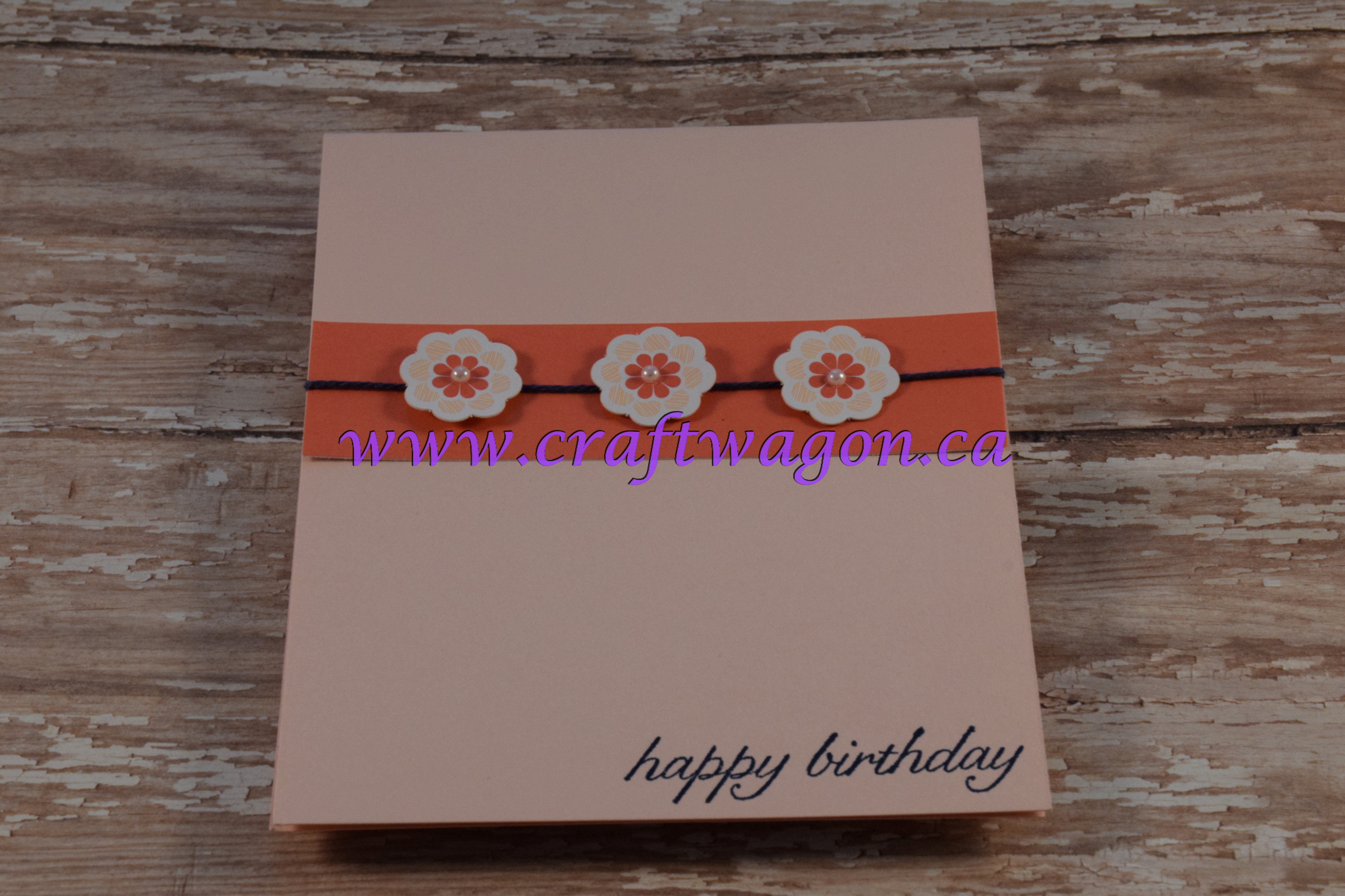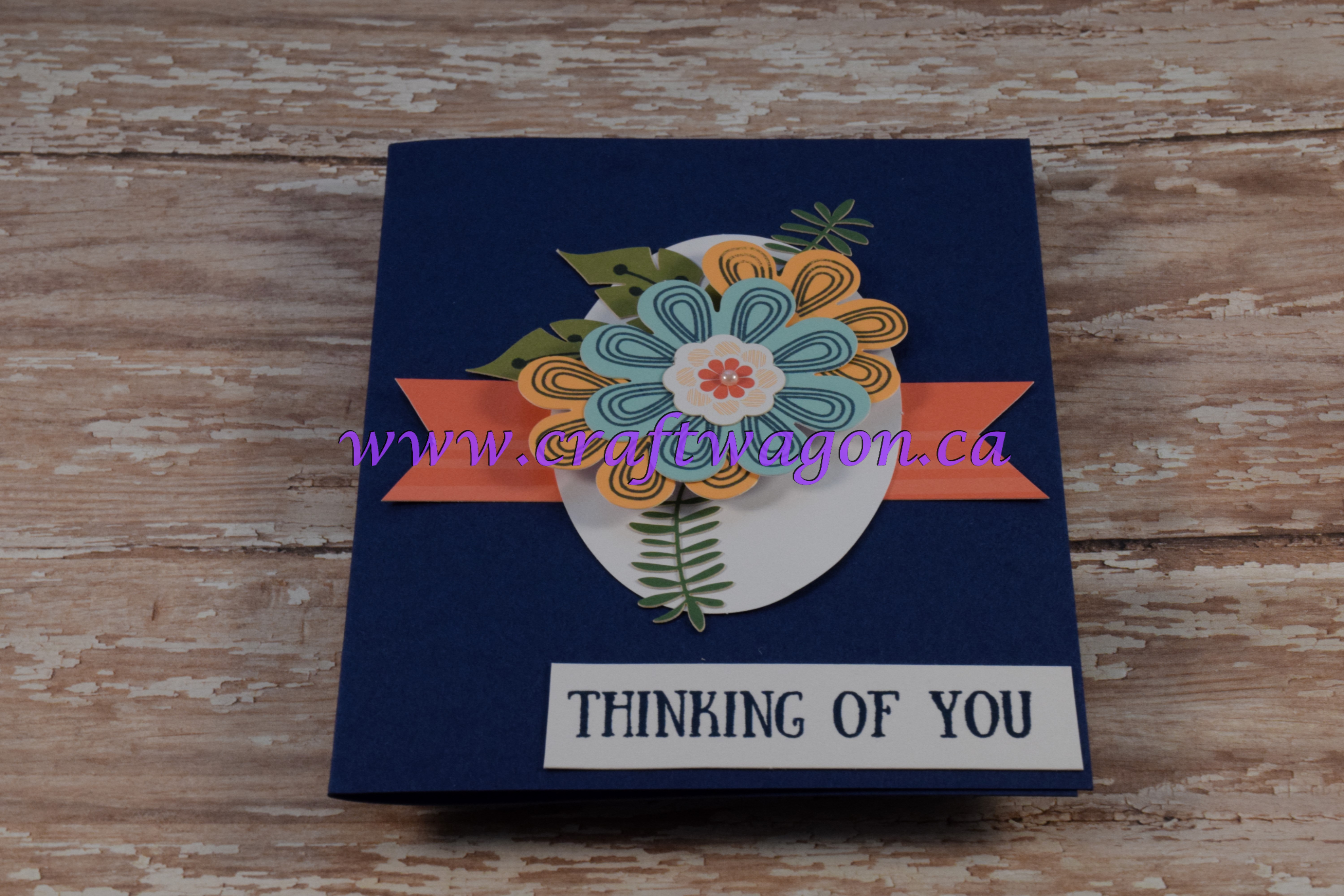 Ink up greeting with Night of Navy on a piece of scrap (this is the back of the Calypso Coral card I used in the previous cards), attach to bottom right of card